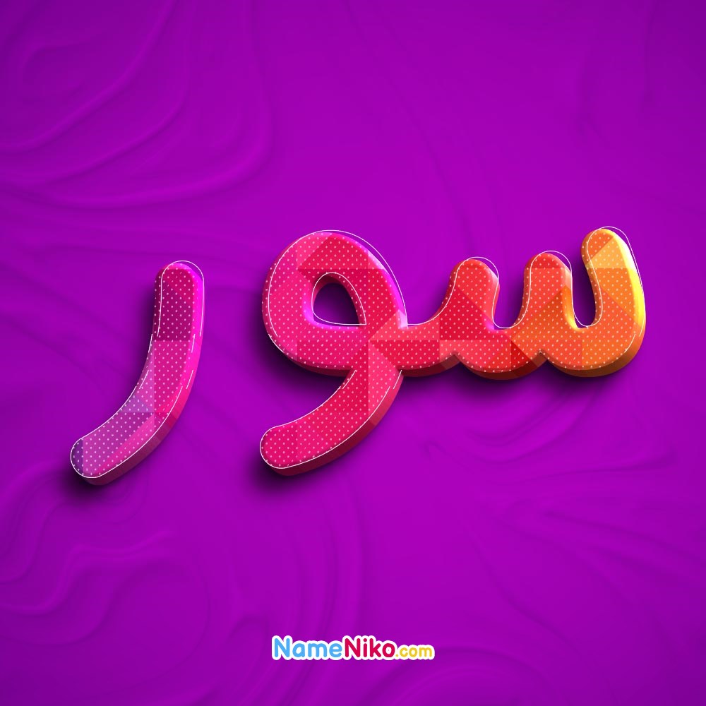 1- (در گياهي) درختي هميشه سبز از خانوادهي سرو با برگهاي سوزني، پوست قرمز و تنهي خمرهاي شكل؛ 2- (اسم مصدر) خوشي و شادماني، سرور. [اين واژه با كلمهي سوَر جمع سوره (سورههاي قرآن) هم نويسه است].