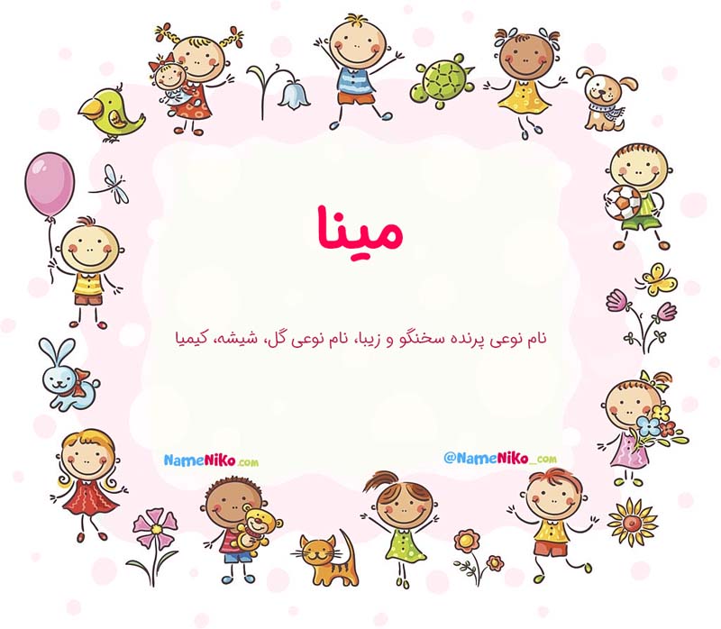 مینا...واقعا قشنگه..پر از حس قشنگ..خوش قلب و خوش سیما ..افتخار میکنم به اسمم وقتی اسممو صدا میزنن سرشار از حس ناب میشم خدایا شکرت اسمم میناس و همیشه حس خوب دارم چون معنی اسمم واقعا با شخصیتم میخونه.